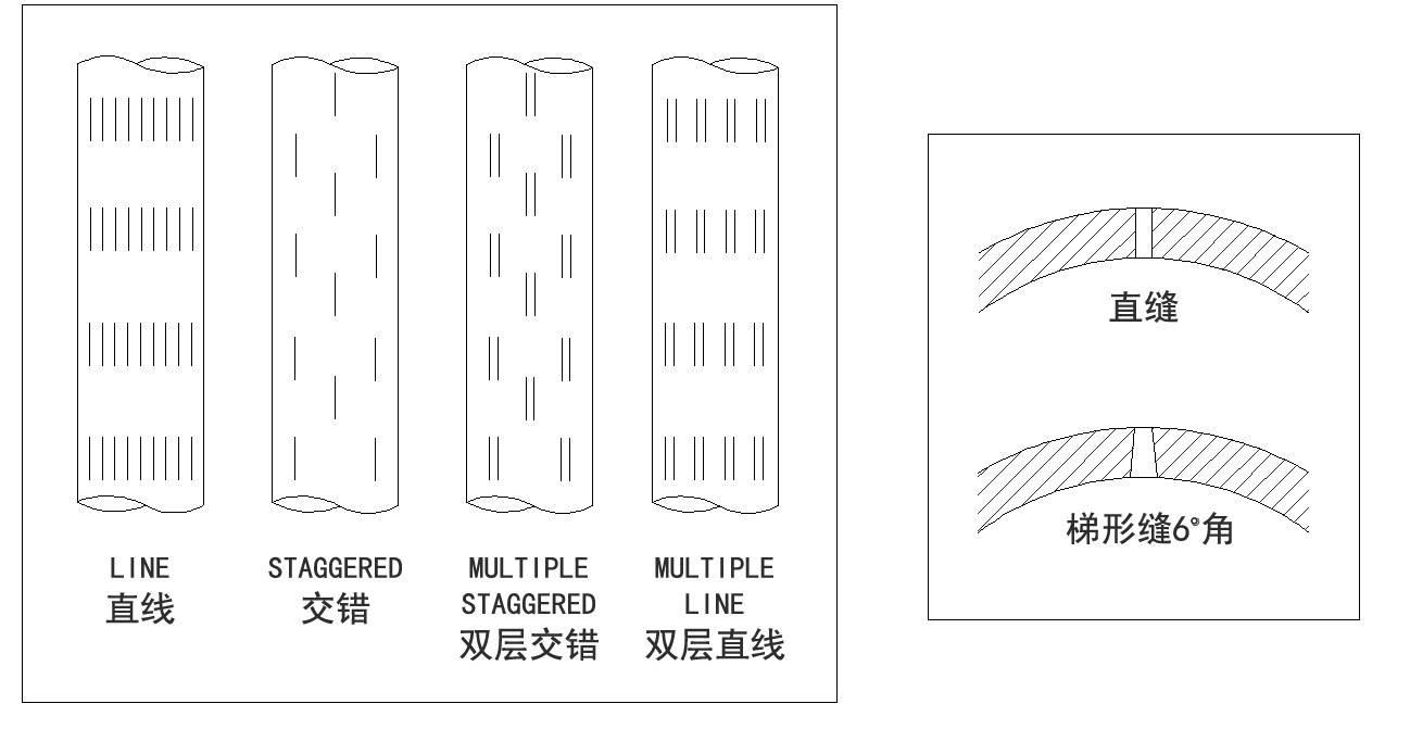 布缝类型:平行、交错、螺旋;